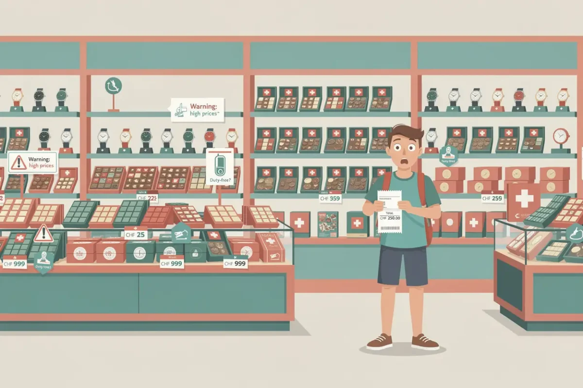 The numbers don’t lie: a bottle of JP Chenet wine costs CHF 11.90 at duty-free versus CHF 6.95 at Coop or just CHF 3.45 at Denner during sales. Chocolate runs approximately 19–31% higher than supermarket prices. Multiple travelers report Swatch watches priced higher than London high streets. Even a duty-free employee admitted to a visitor that they couldn’t compete with supermarket bulk purchasing power.
